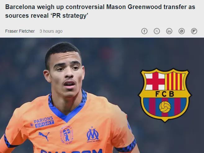 北京时间12月19日,据英国媒体TEAMtalk报道称,巴萨正在权衡一笔令人意外的引援——前曼联球星梅森·格林伍德。不过,这家西班牙豪门若想推进这笔交易,必须面对一场舆论风暴。